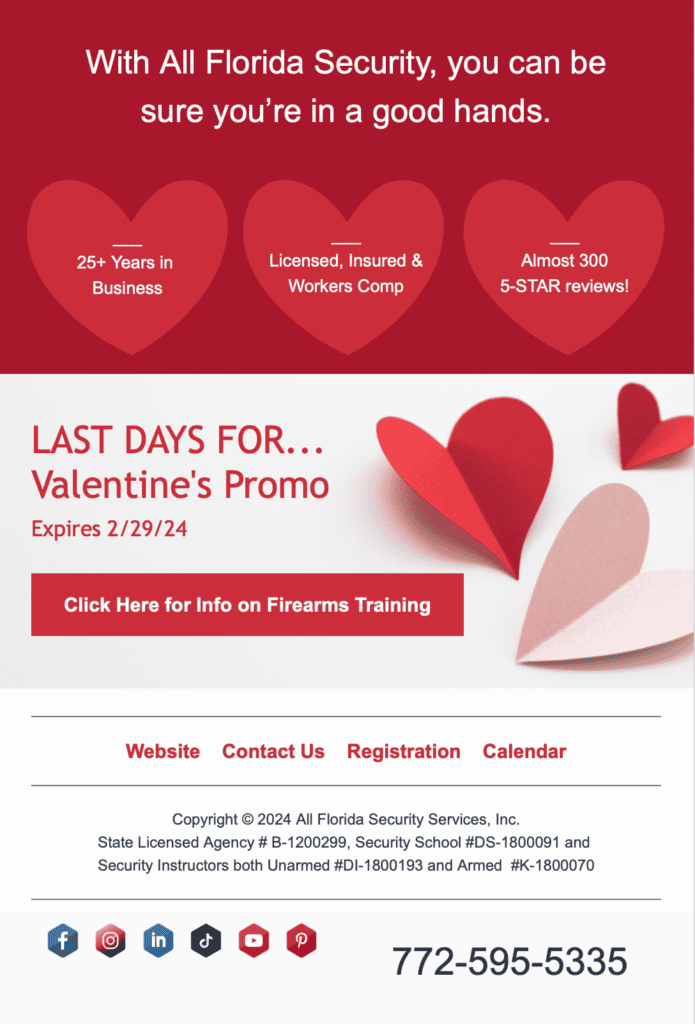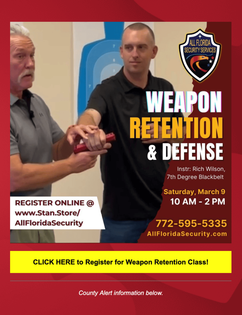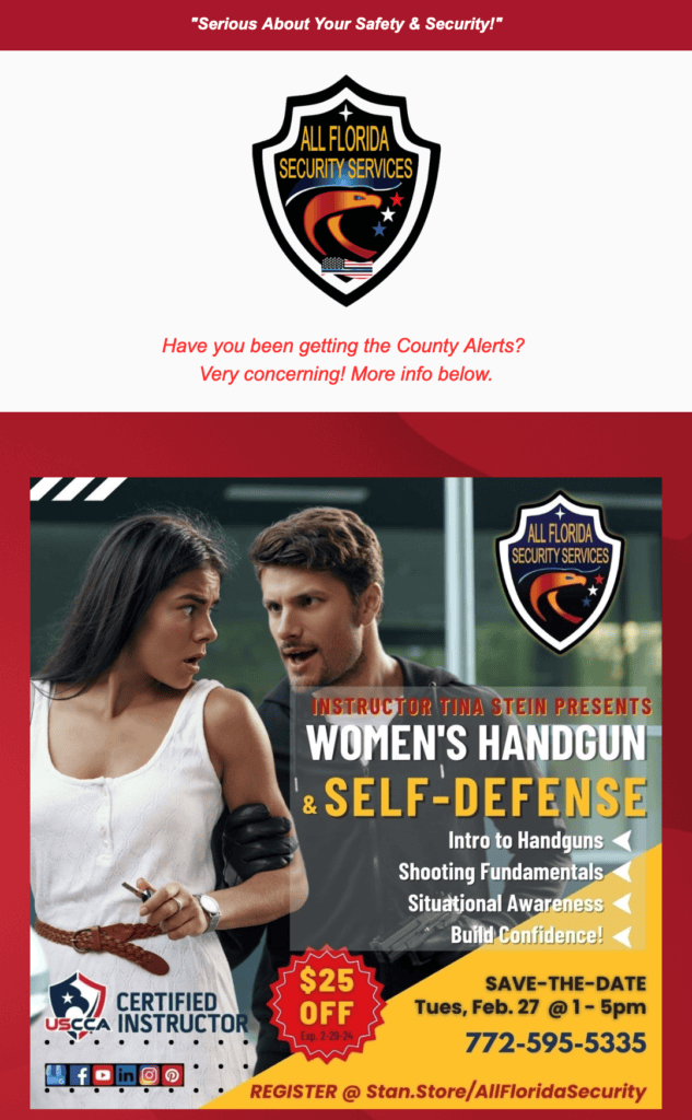County Alerts, Security Guard Services, Women’s Firearm Training, and Security Certification Classes